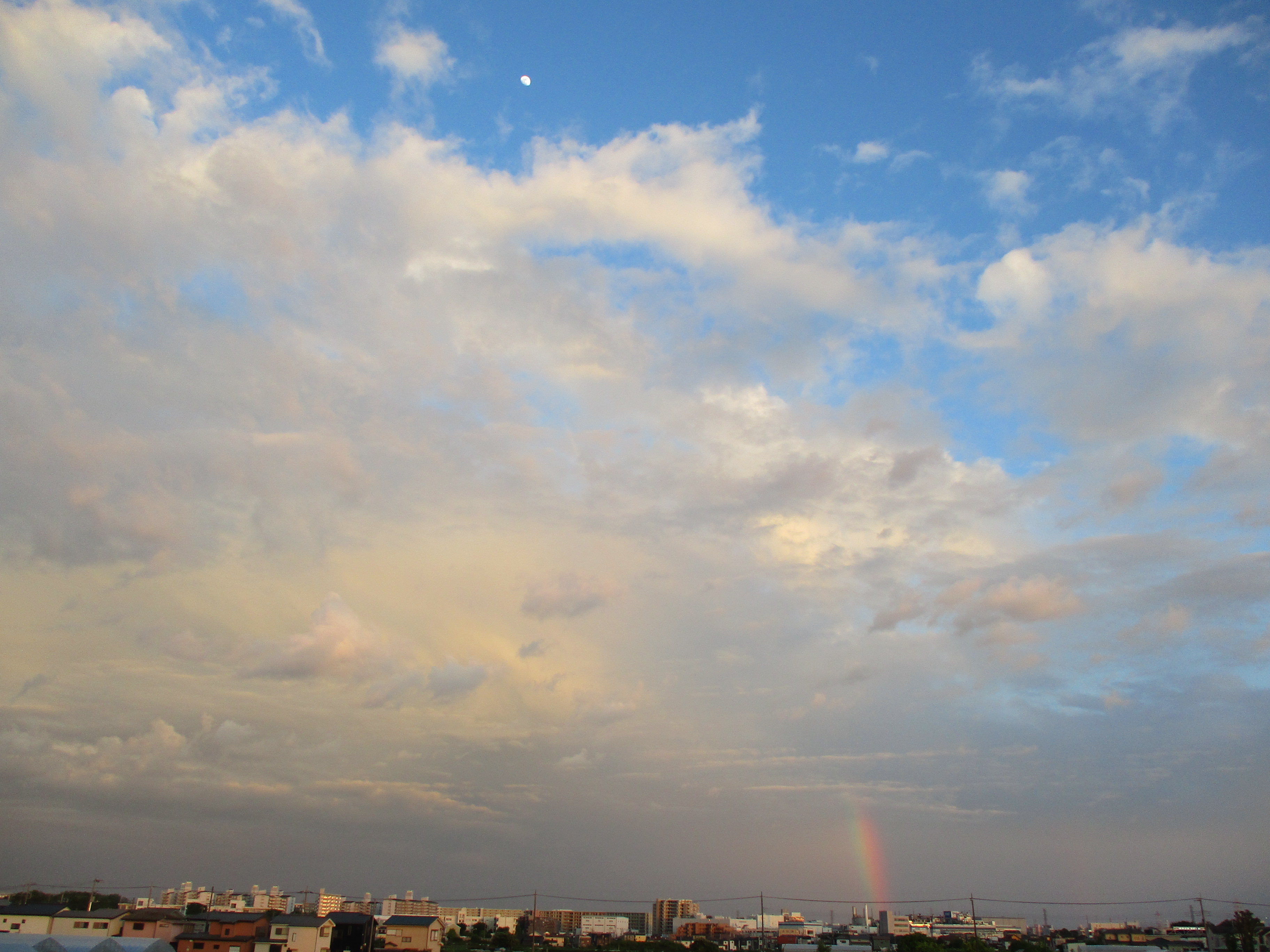 昨日の夕方。 南側の空に完全なアーチ型ではないものの、綺麗な虹が掛かっていました。 夕刻の短い時間帯でしたが、なんだか少し得した気分になりました。